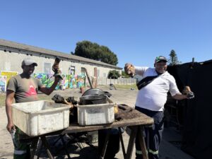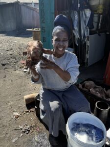 In the afternoon we went to a township, Langa was the one we went to, what a township is, is people from rural areas who come to the city to seek out a better life, they come with nothing so they start out in these townships, in homes made out of wood and metal siding, or half of a shipping container, they do what they can to survive and make some money for themselves. The people there were so welcoming, they were so happy and wanted to show us everything about their world. We met two men who had a business processing and cooking and selling cow legs and lambs legs. Then another place was cooking and selling sheep’s heads. We chatted with the locals and then squeezed in for a photo with 4 wonderful woman. Then after that one of the Germans was getting a photo and one of the ladies wanted to her to come over to her, but there was confusion and she didn’t go, the poor lady looked so upset and so I ran over and got a photo with her, she gave me the biggest hug and the smile was huge.